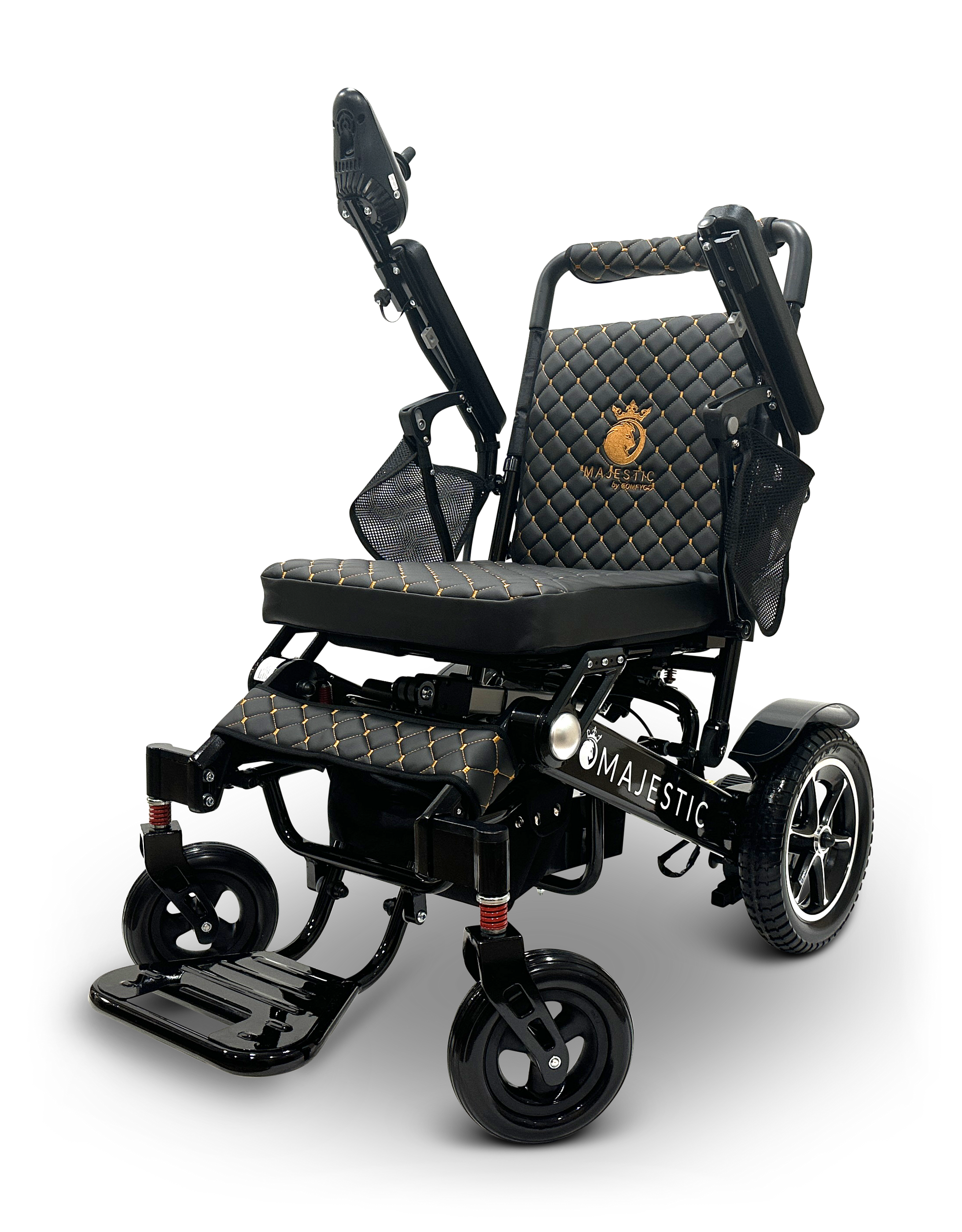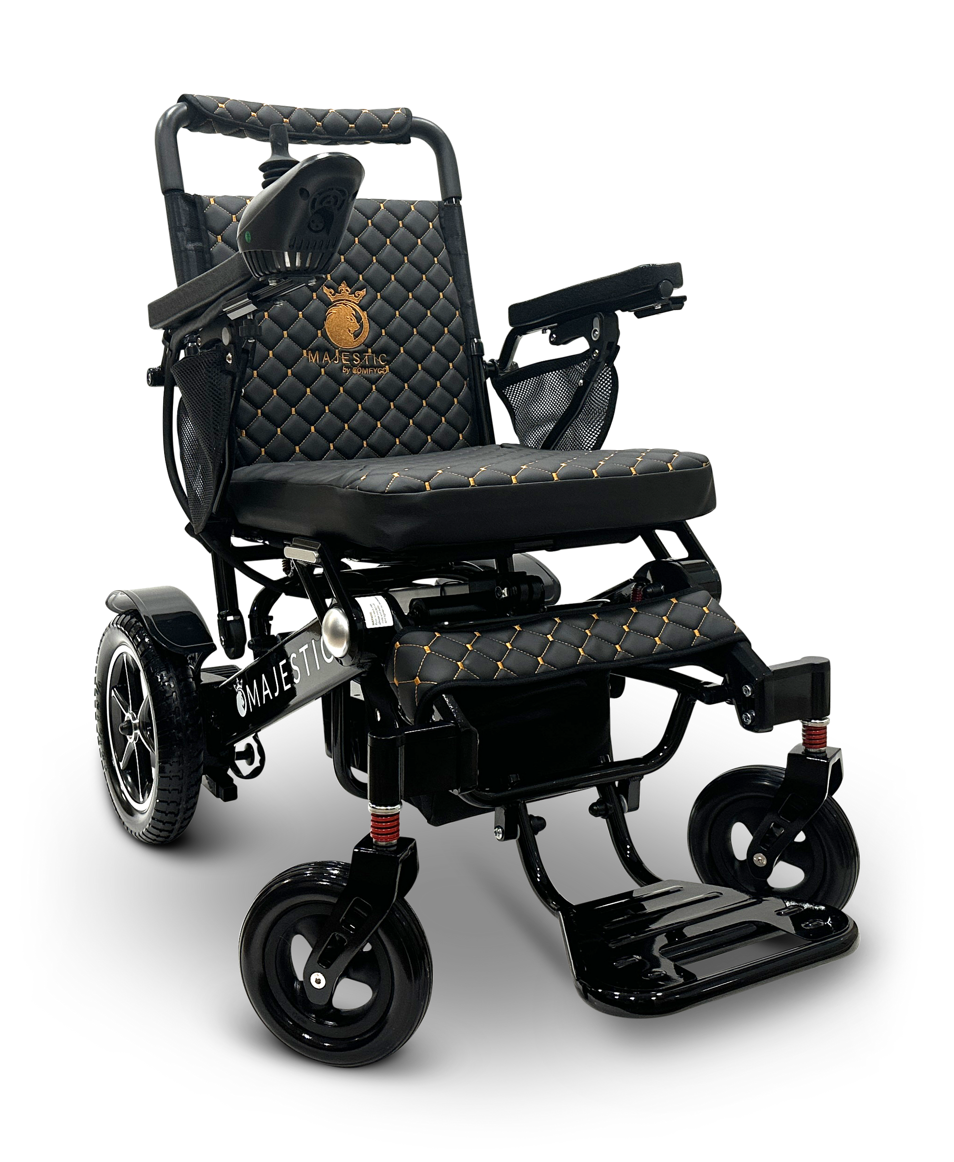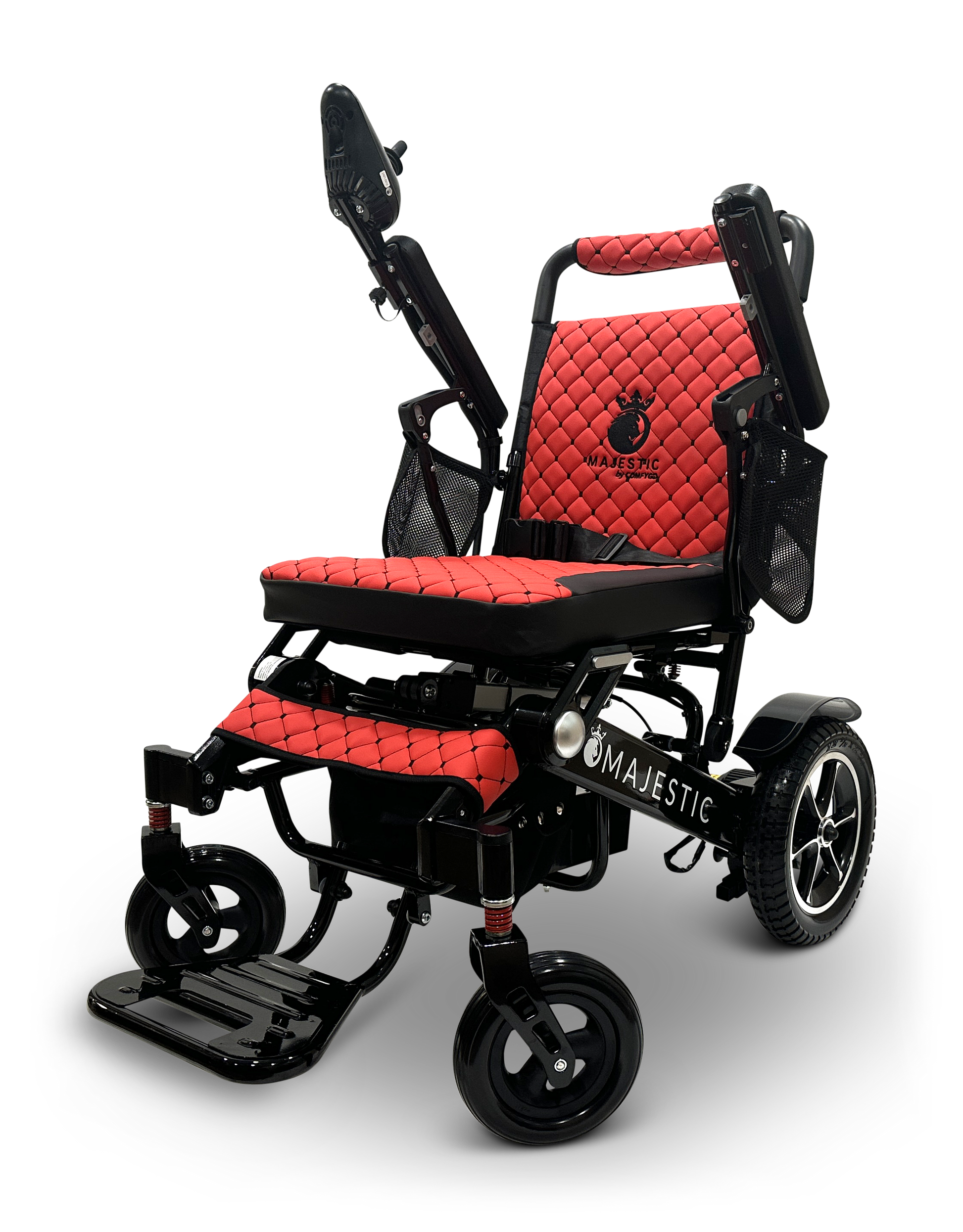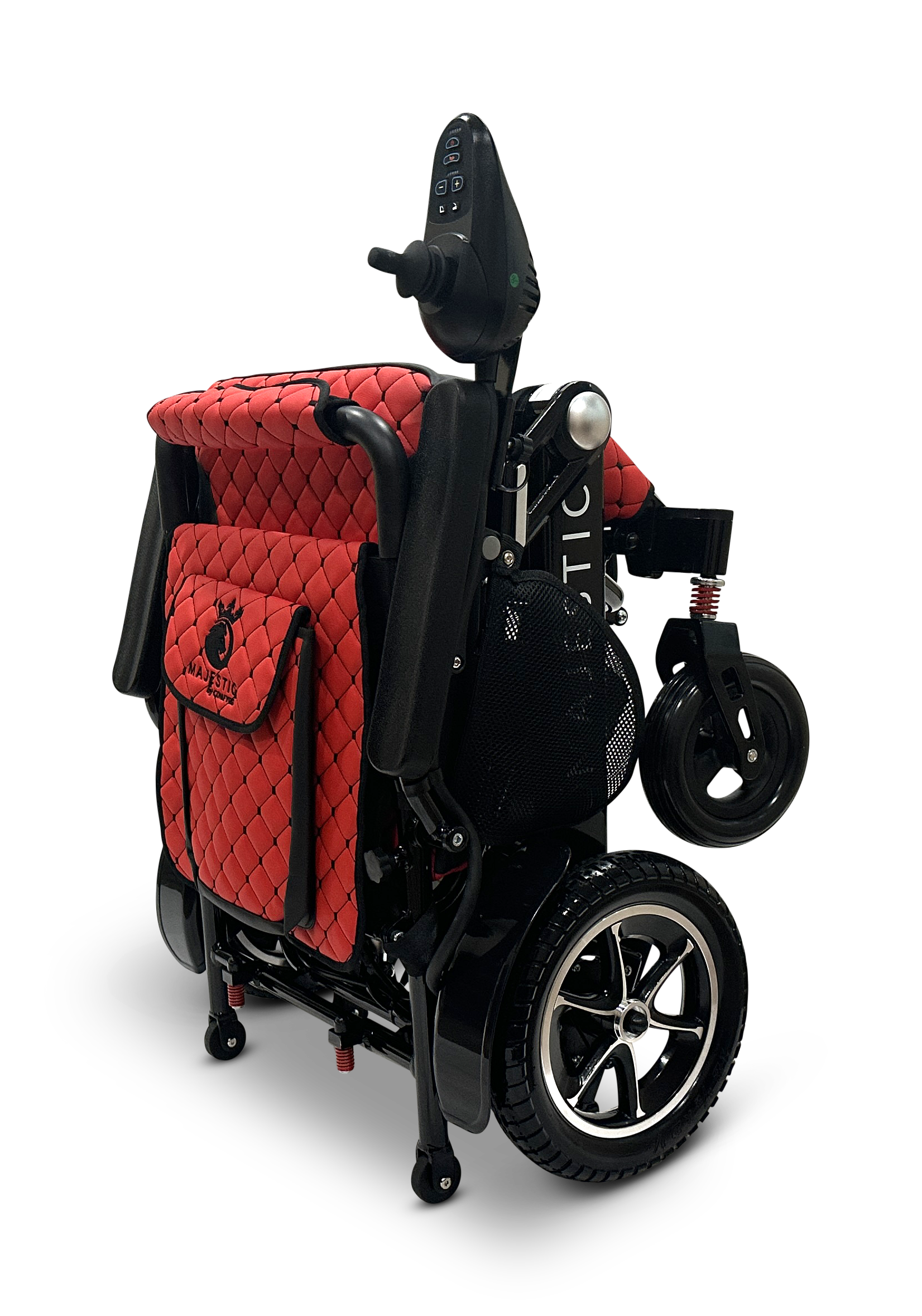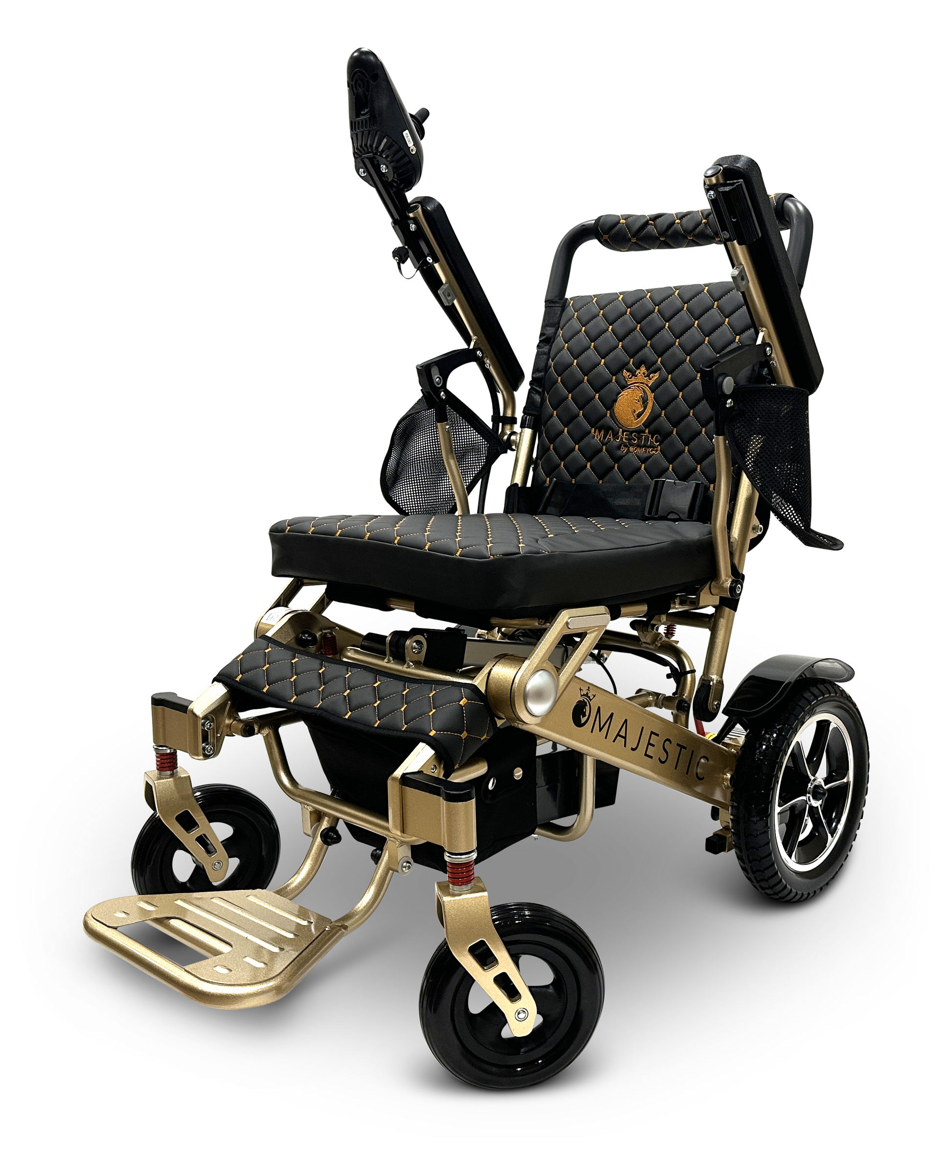 The IQ-7000 wheelchair is a beautifully designed folding electric wheelchair for travel. This transport motorized wheelchair is lightweight, airline friendly. This is a sturdy wheelchair and features a weight capacity limit of up to 350 lbs. with a top speed of 4 mph. The IQ-7000 is available in four frame colors with five optional cushion and backrest colors that allow you to customize the color of your wheelchair fully. It’s equipped with a 360-degree waterproof universal intelligent joystick for easy control. The intelligent joystick includes a power on/off button with a power indicator light, speed selection buttons, and a horn. The 12AH lithium-ion battery powers two 250W brushless DC motors that deliver a range of up to 13 miles. 20AH batteries gives up to 19 miles of range