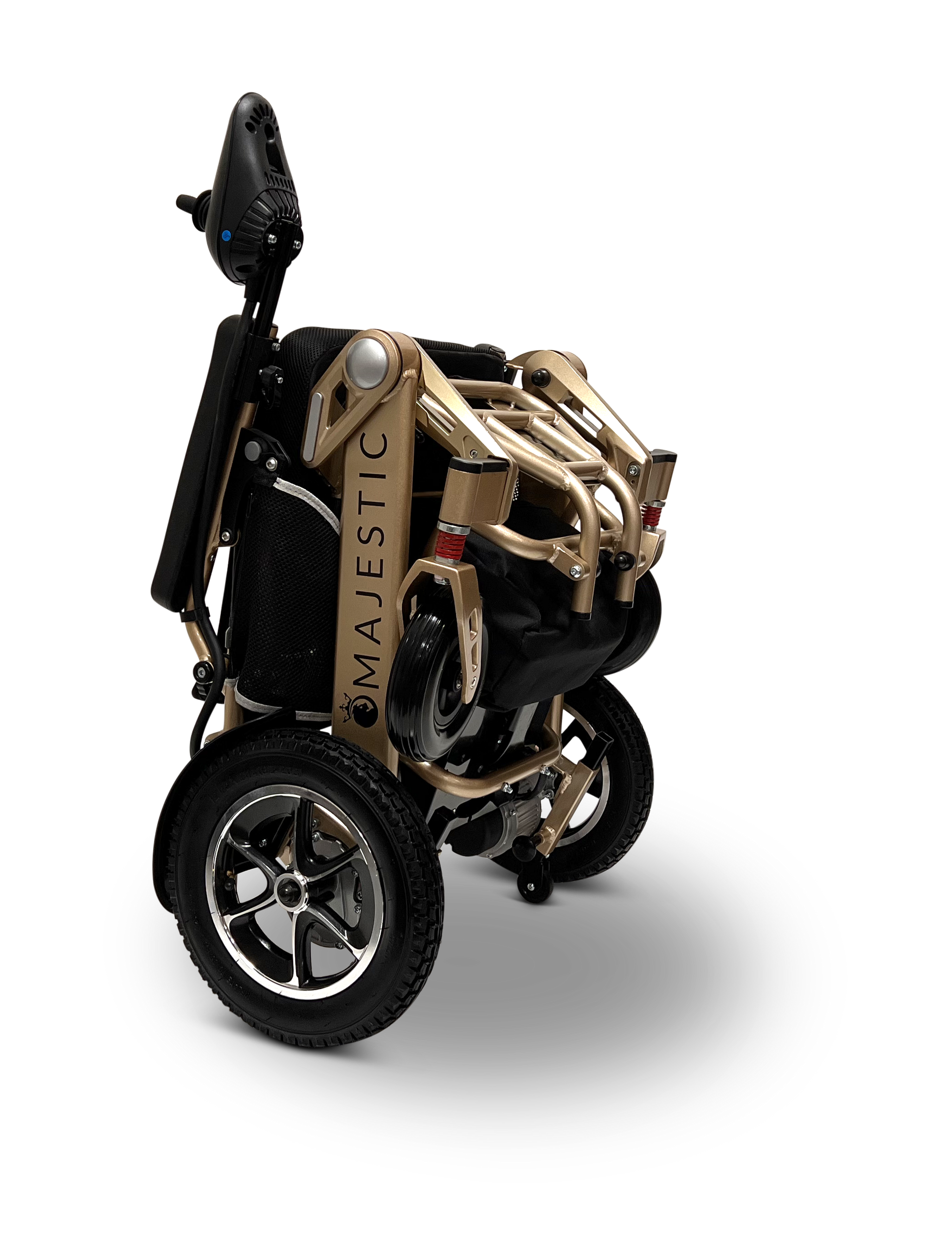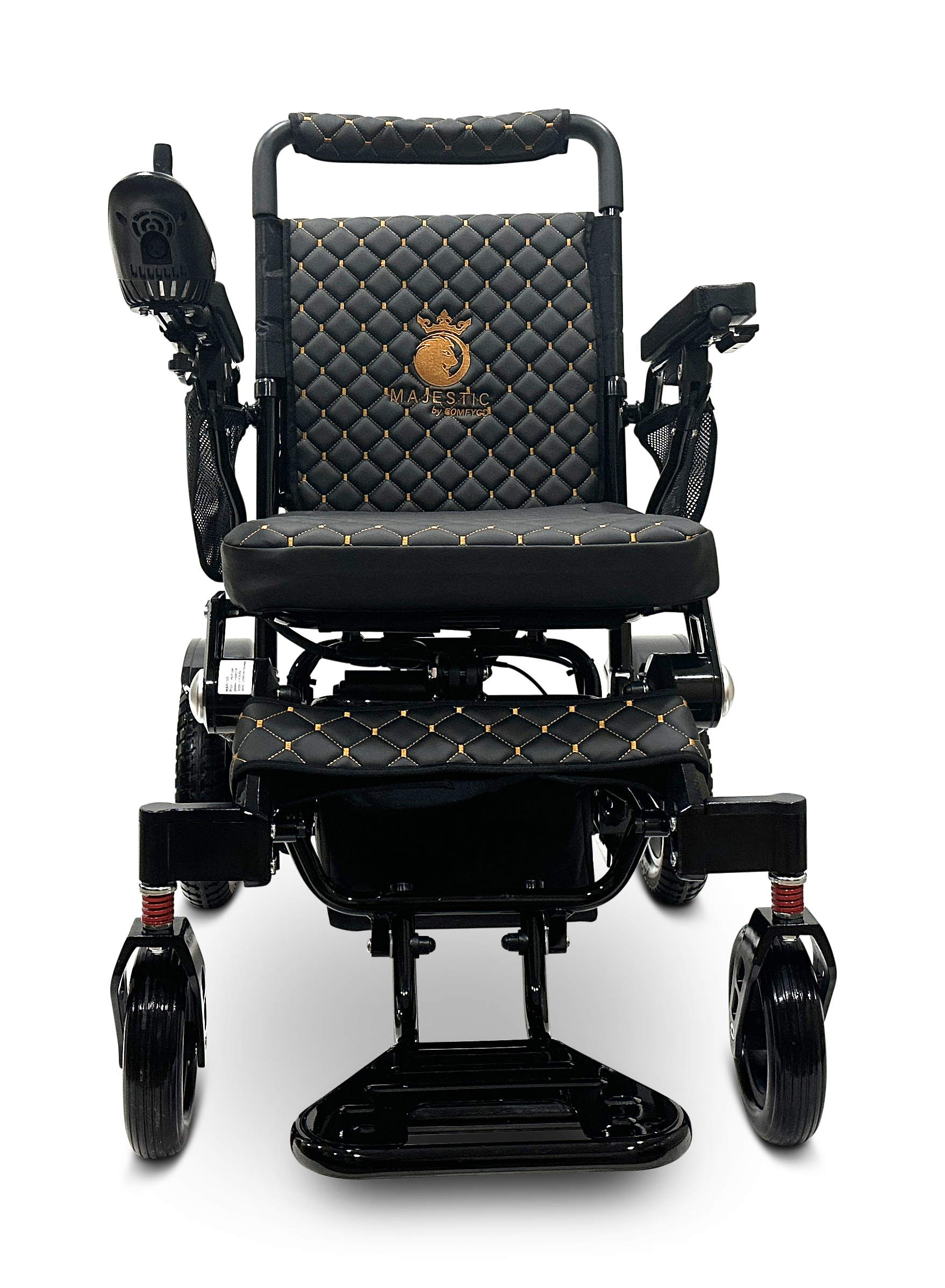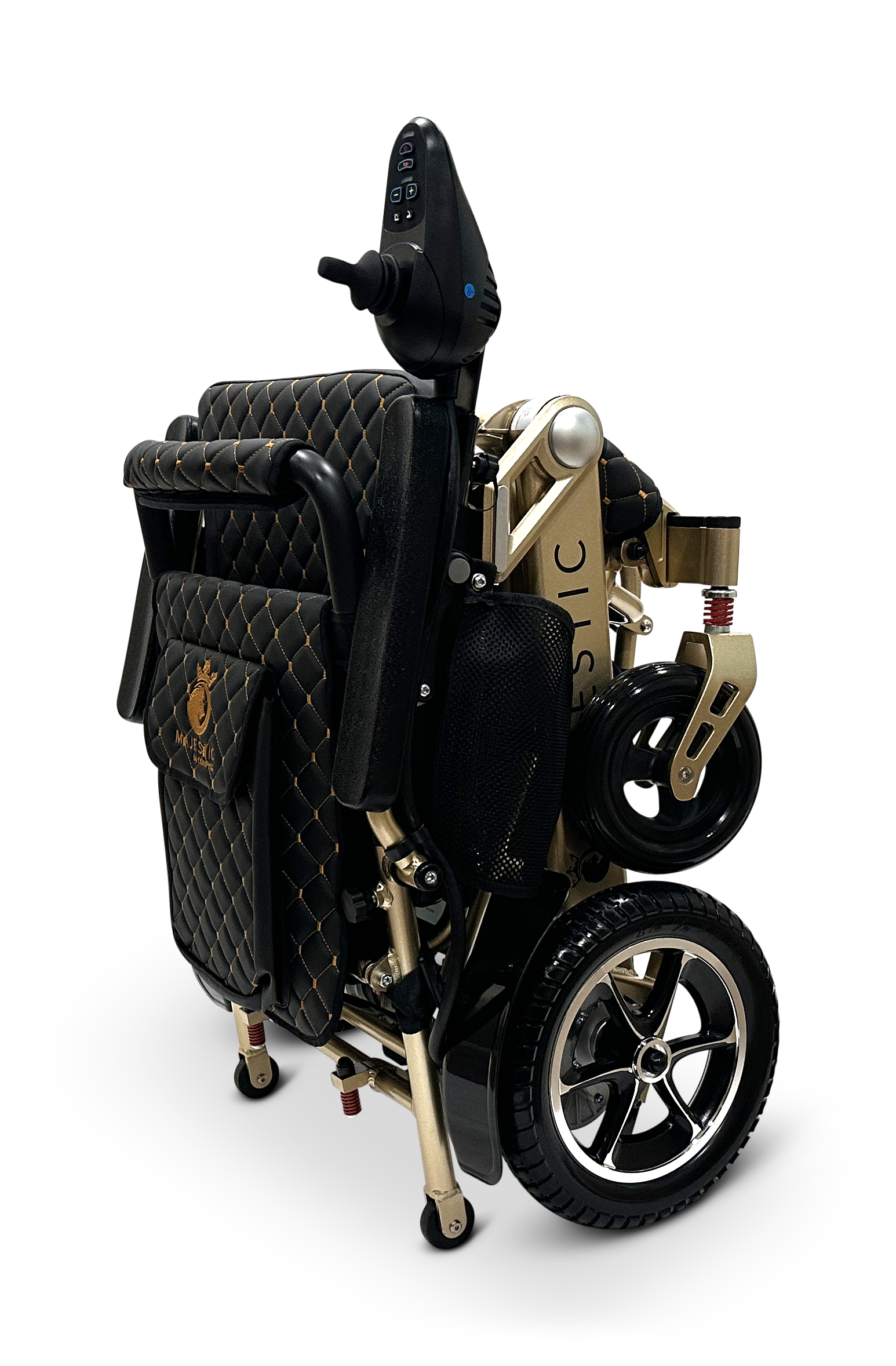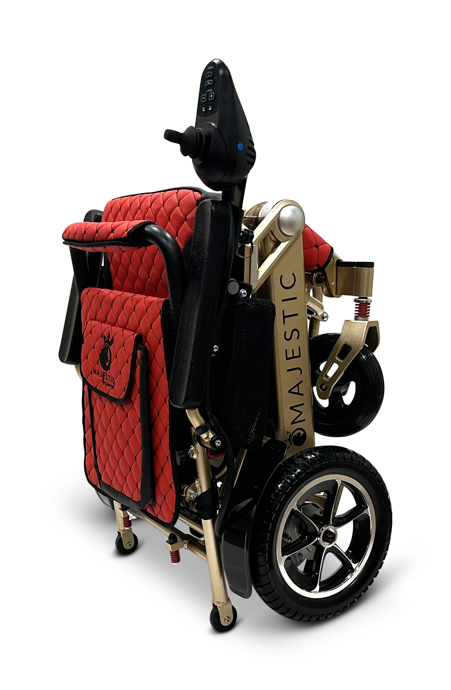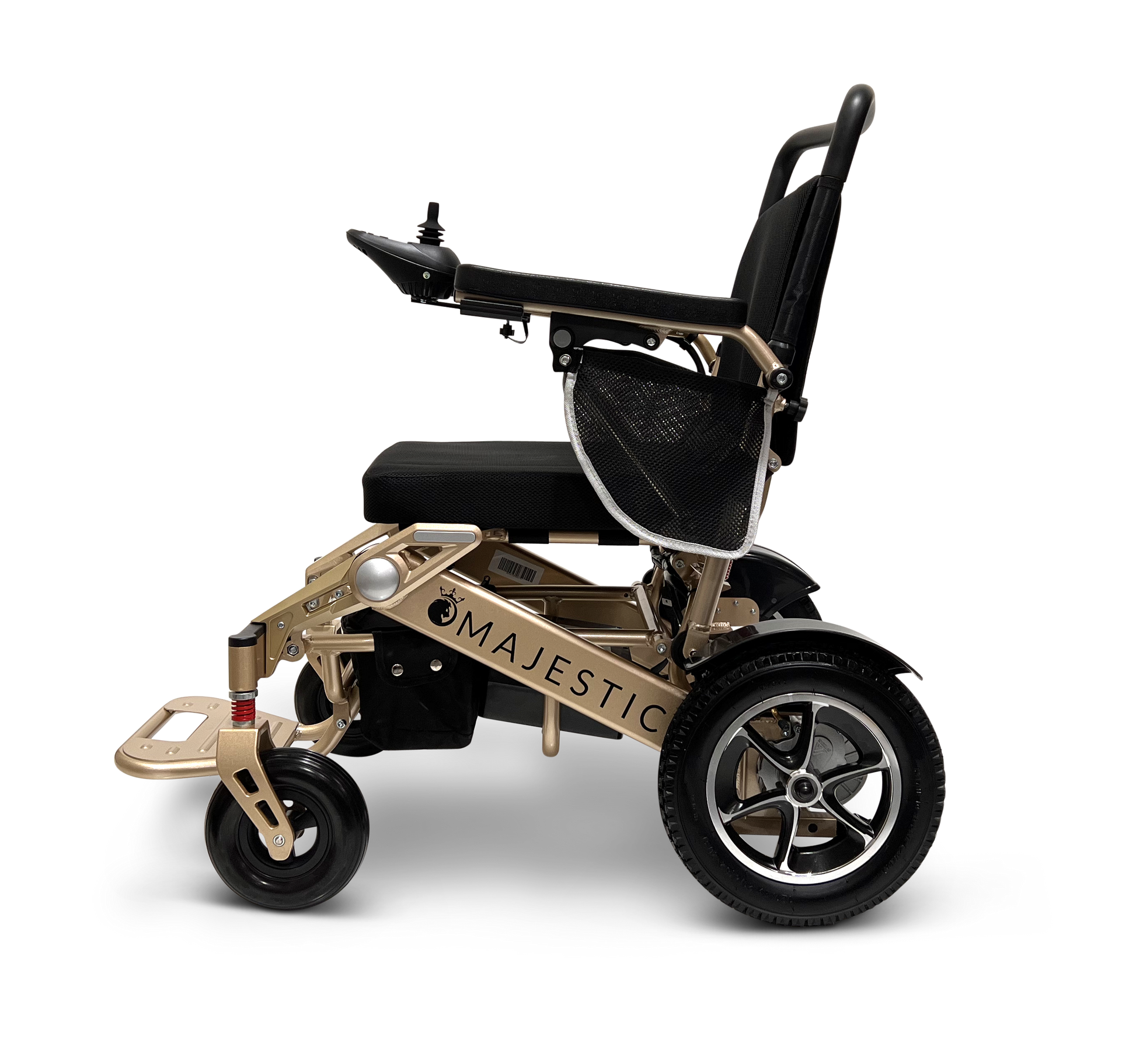 The IQ-7000 wheelchair is a beautifully designed folding electric wheelchair for travel. This transport motorized wheelchair is lightweight, airline friendly. This is a sturdy wheelchair and features a weight capacity limit of up to 350 lbs. with a top speed of 4 mph. The IQ-7000 is available in four frame colors with five optional cushion and backrest colors that allow you to customize the color of your wheelchair fully. It’s equipped with a 360-degree waterproof universal intelligent joystick for easy control. The intelligent joystick includes a power on/off button with a power indicator light, speed selection buttons, and a horn. The 12AH lithium-ion battery powers two 250W brushless DC motors that deliver a range of up to 13 miles. 20AH batteries gives up to 19 miles of range