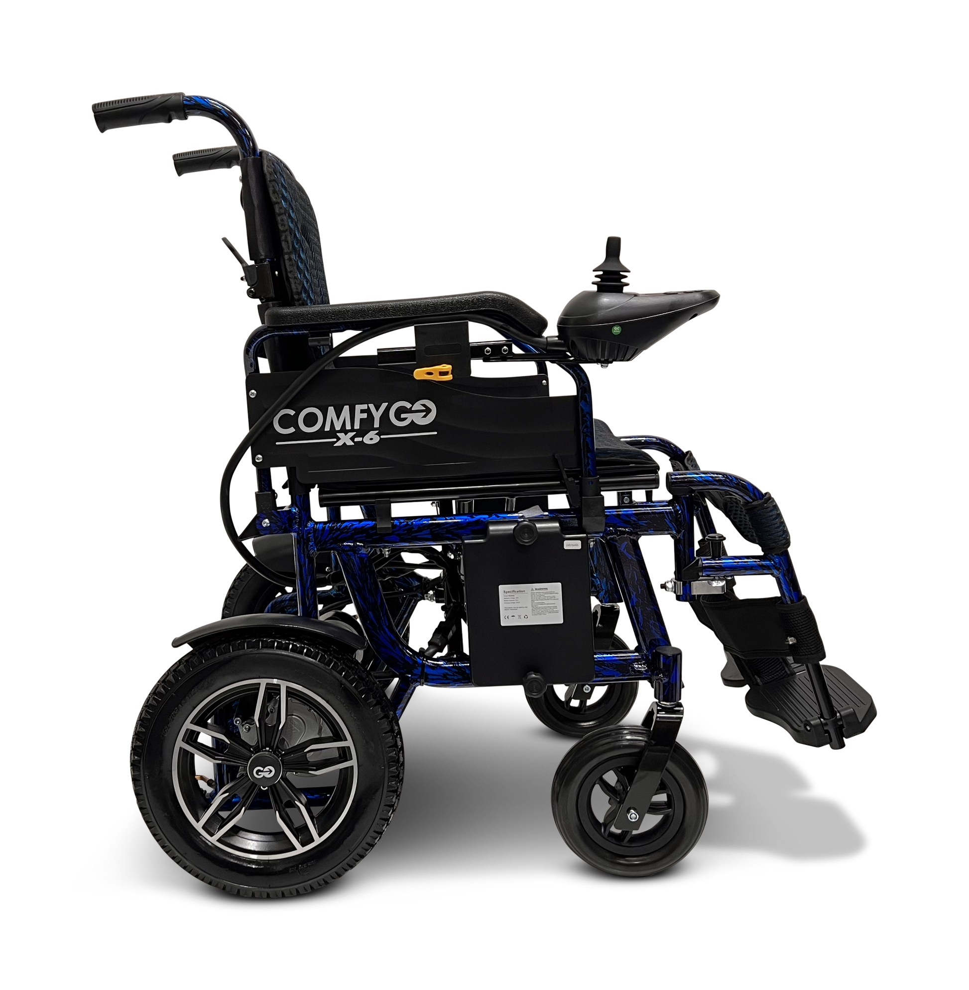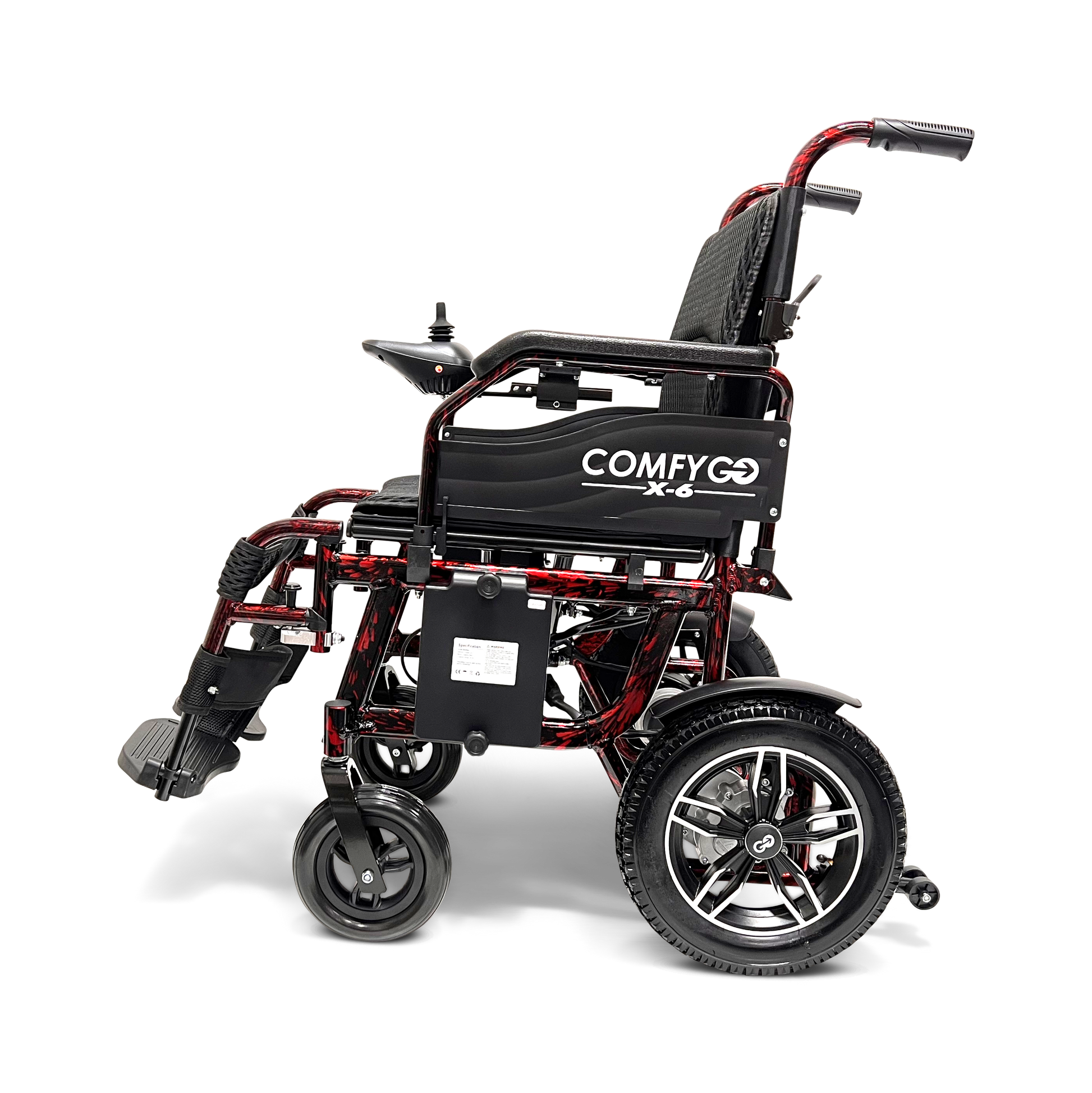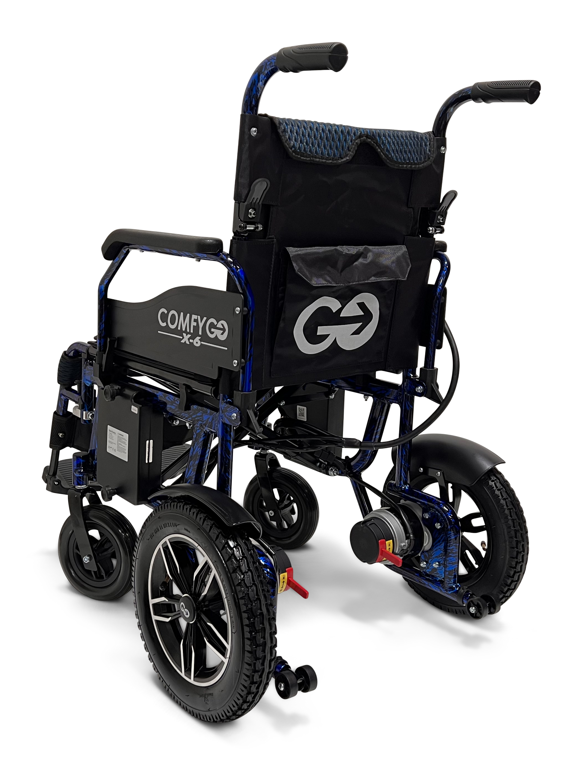 Discover the X-6 Lightweight Electric Wheelchair, a game-changing mobility solution that merges advanced technology with ultimate comfort, ensuring that your daily journeys are smooth and enjoyable. This innovative electric wheelchair boasts a lightweight design, making it easy to maneuver and transport, while still providing the reliability and durability you need. The X-6 is available in three eye-catching color combinations: a sleek Black Frame with Black cushion for a classic look, a vibrant Blue Flame Frame for those who desire a pop of color, and a bold Red Flame Frame for a fiery statement. Each option is thoughtfully designed to cater to your individual style preferences, allowing you to express yourself while on the go. Equipped with user-friendly features, the X-6 ensures an effortless experience for users of all levels. Explore the full range of this electric wheelchair's capabilities. Make the X-6 Lightweight Electric Wheelchair your go-to choice for a stylish and efficient mobility companion.